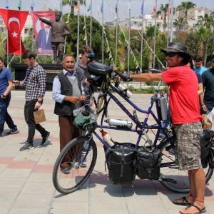 على دراجته الهوائية، وصل الإسباني “كفيكو سان أوفري”، اليوم الجمعة، إلى ولاية مرسين جنوبي تركيا، في رحلة بدأها من موطنه إسبانيا قبل أربعة شهور، قاصدا ماليزيا.