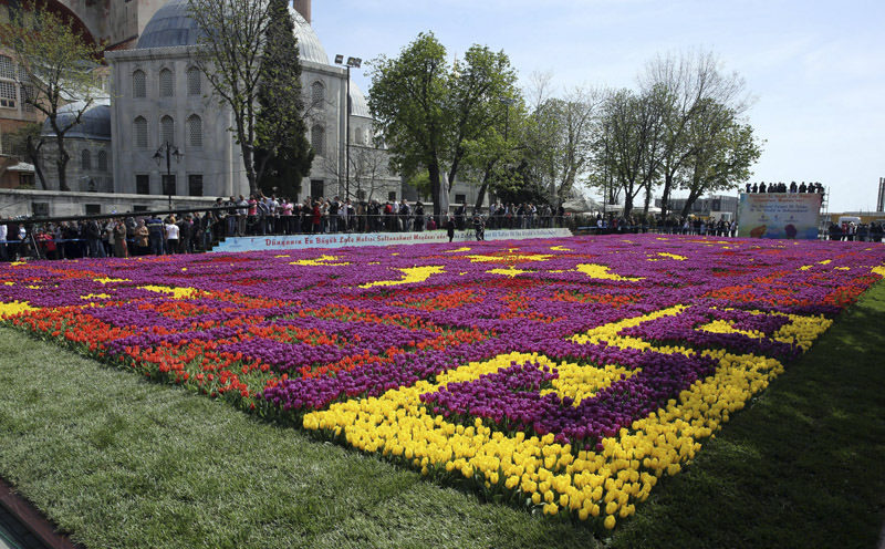 تزينت المدينة القديمة من إسطنبول بأكبر سجادة في العالم، والتي نقشت من أزهار التوليب الملونة.
