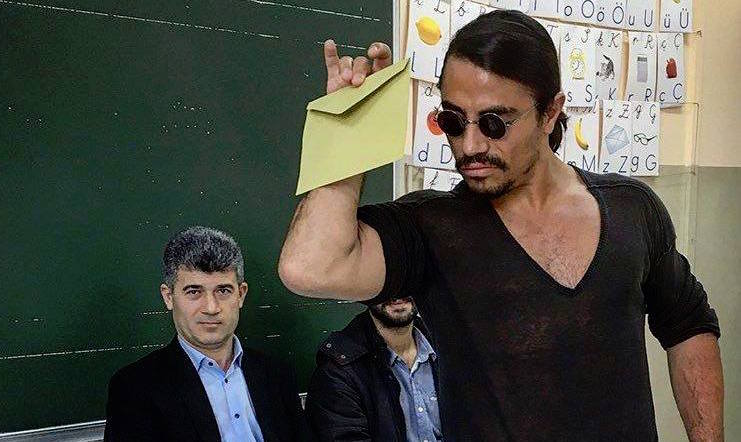 وتظهر الصورة الجزار والطباخ التركي نصرت غوكشيه (42 عاما)، الملقّب بـ “سولت باي” نسبة إلى رشة الملح على اللحم التي اشتهر بها، والتي أحدثت ضجة على وسائل التواصل الاجتماعي عبر الأنترنيت في مختلف أنحاء العالم.
