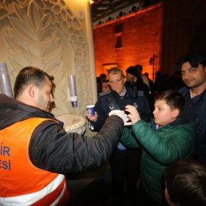وزعت بلدية قضاء “بي شهير” في ولاية قونية وسط تركيا، حليبا ساخنا، أمام مسجد “أشرف أوغلو”، بمناسبة ليلة الإسراء والمعراج.