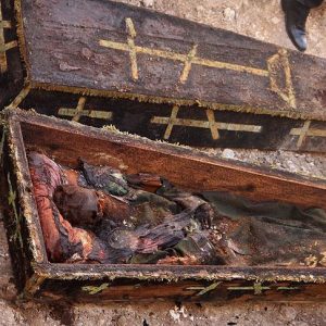 ويلاحظ أن لحية الضابط المدفون بزيه العسكري، وشعره لم يصبهما التلف، فضلا عن جزء كبير من جسده.