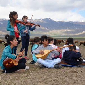 وبدأ الأطفال الذين يعزفون على آلات موسيقية مثل “العود” و”المندولين” و”الكمان” و”الغيتار” و”الناي” و”البيانو”، بتقديم حفلات موسيقية باللغات التركية والكردية والانجليزية في قرى وأقضية المدينة.