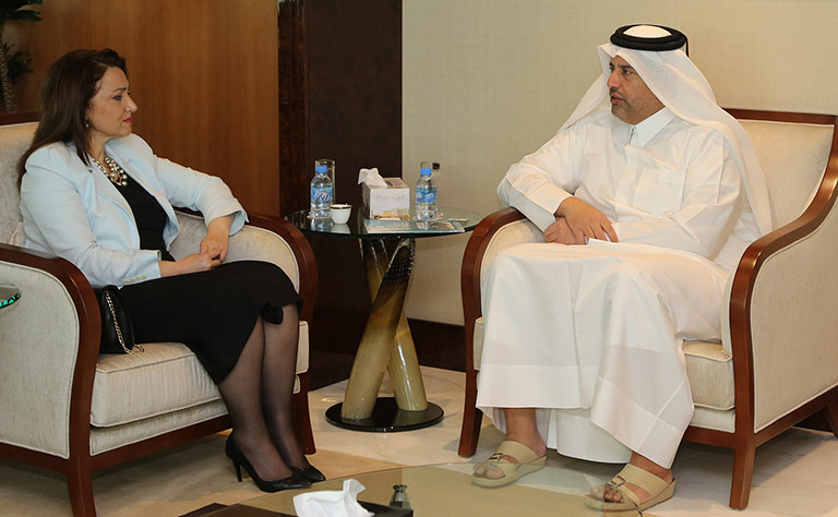 التقى الشيخ أحمد بن جاسم بن محمد آل ثاني وزير الاقتصاد والتجارة القطري في الدوحة، اليوم الأحد، نزاكات أمينة اتاسوي رئيس اتحاد سيدات ورجال الأعمال الصناعيين الأتراك.