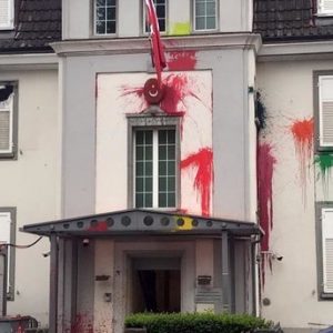 اعتدى ملثمون على القنصلية العامة لتركيا في زيوريخ بسويسرا، برمي الطلاء على مبناها، وكتبوا باللون الأحمر عبارة “اقتلوا أردوغان”، على موقف الحافلات قرب القنصلية وأحد الأبنية المقابلة لها.