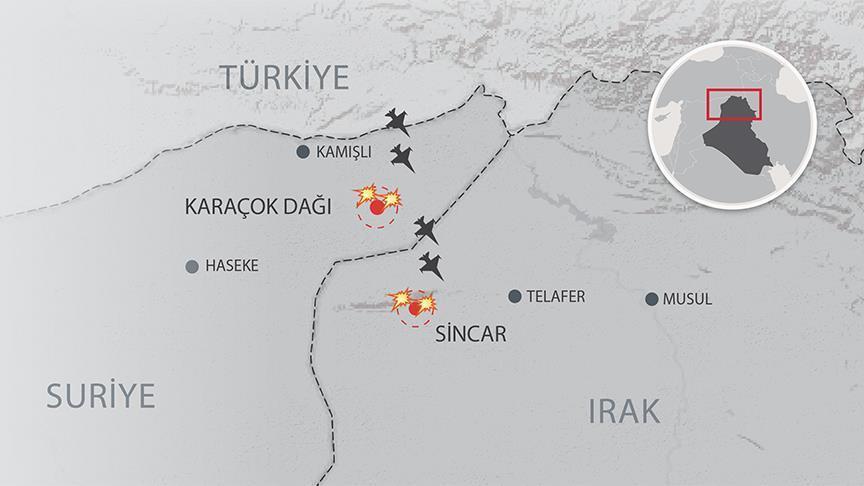 وكذلك؛ إجراء التبليغات اللازمة قبل تنفيذ العمليات الجوية ضد منطقتي جبل سنجار شمالي العراق وقره تشوك شمال شرقي سوريا، في 25 أبريل/ نيسان الماضي”.