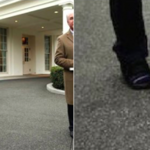 وكتب المخرج السينمائي جون كوين في حسابه على موقع التواصل الاجتماعي “تويتر” مازحا “يبدو لي أن شون سبايسر ارتدى فردتي حذاء مختلفتين، والآن يحاول بصعوبة إخفاء هذا الأمر”.