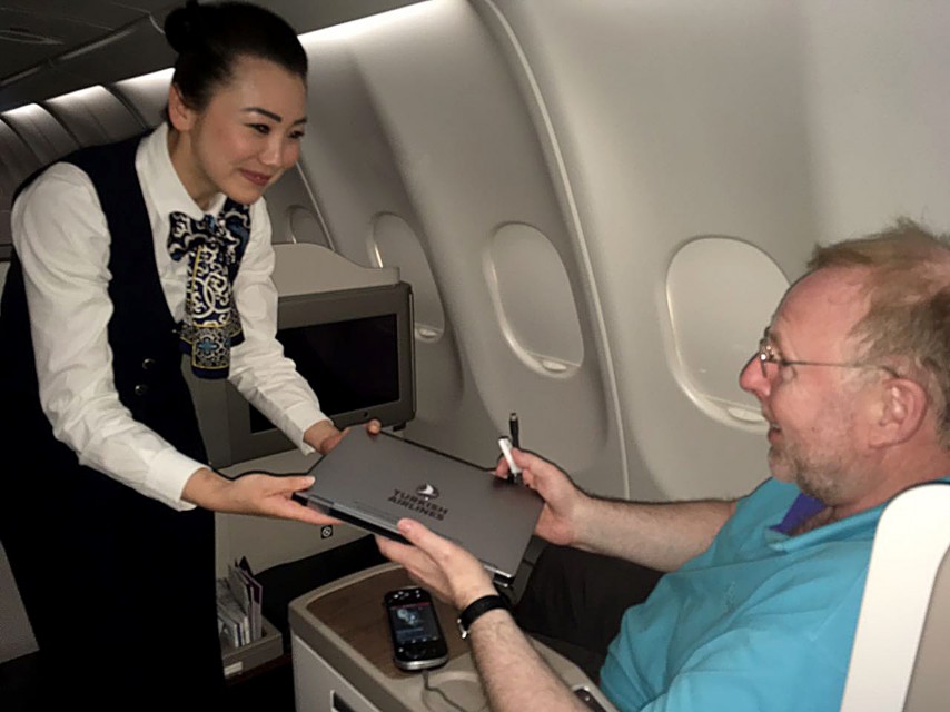 بدأت شركة الخطوط الجوية التركية، اليوم الجمعة، توزيع حواسيب محمولة على المسافرين ضمن درجة رجال الأعمال في رحلاتها المتّجهة إلى بريطانيا.