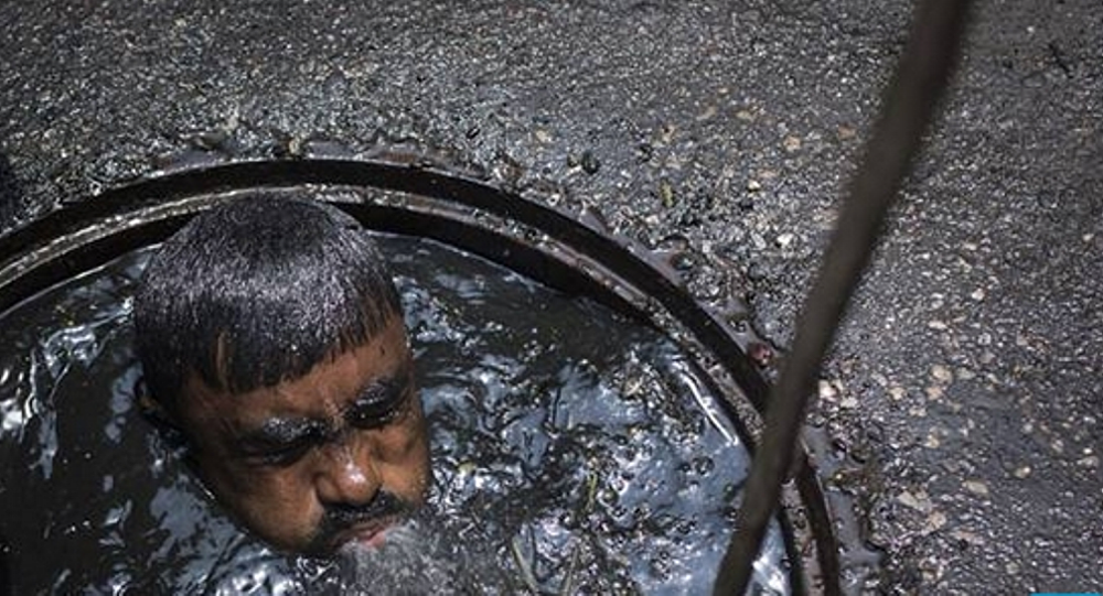 يعمل عامل نظافة في بنغلاديش، طوال اليوم وهو مدسوس في مصارف الشوارع لتنظيفها.