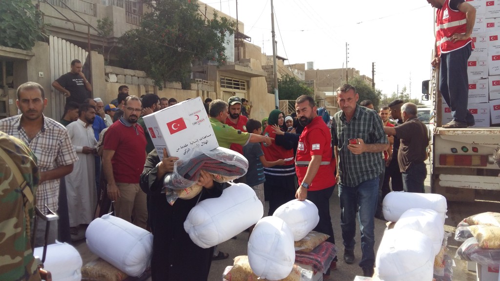 وزعت جمعية الهلال الأحمر التركية، اليوم الإثنين، أكياس نوم وبطانيات ومساعدات غذائية على أسر محتاجة في حيي “القادسية” و”الرشيدية” بالجانب الشرقي من مدينة الموصل العراقية.