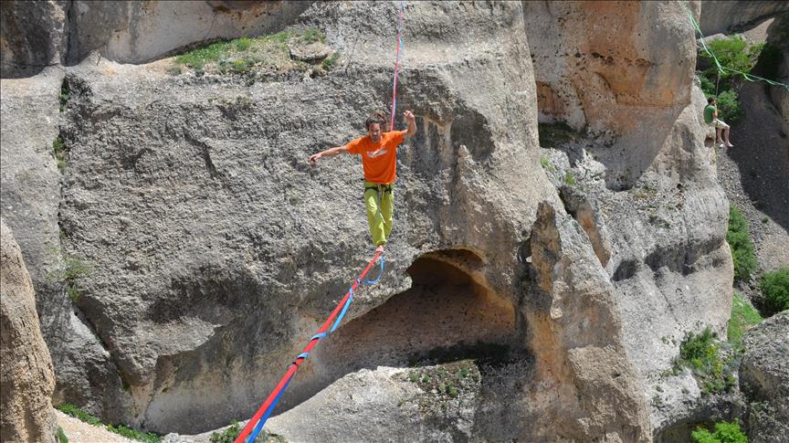 تمكن الرياضي السويسري ” صموئيل فولاري” من المشي على حبل مشدود طوله ألفًا و210 متراً، وذلك في إطار مشاركته في “مهرجان وادي ليفنت الدولي للرياضة الطبيعة” المقام في ولاية ملاطية شرقي تركيا.