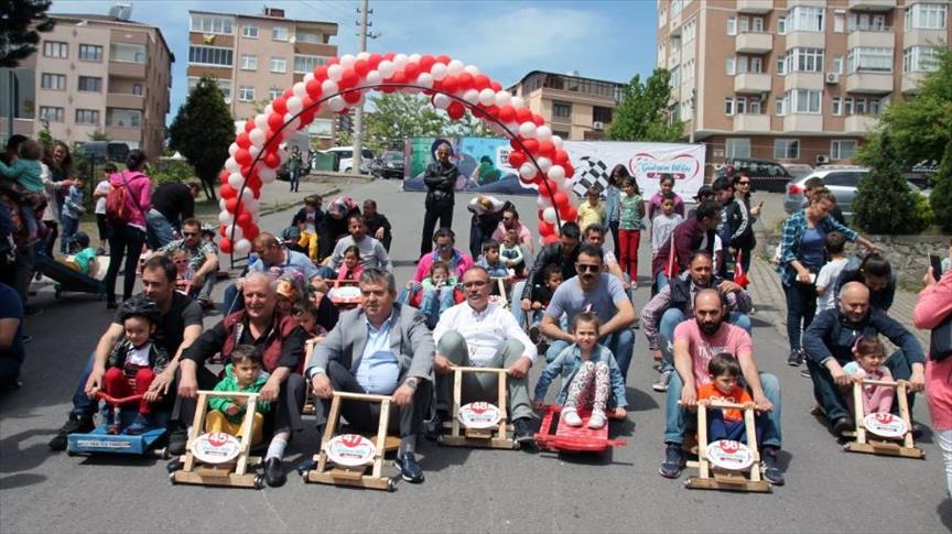 نظمت روضة للأطفال في ولاية زونغولداق شمالي غربي تركيا، سباقاً لسيارات يدوية بدائية صممها الأطفال وأولياء أمورهم.