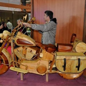 استحوذت دراجة نارية من الخشب، صنعها مهندس ميكانيك تركي، على اهتمام زوار معرض قسطموني السابع للمصنوعات الخشبية.