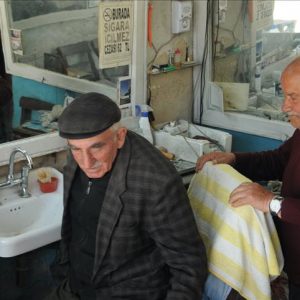 ورغم الصعوبات التي يواجهها في الحركة جراء تقدم سنه، فإن “آغيش”، يذهب يوميا إلى المحل الواقع بقضاء “أرتوكلي”، ومساحته 8 أمتار مربعة، ويضم كرسيا واحدا، ليزاول فيه عمله بمفرده.