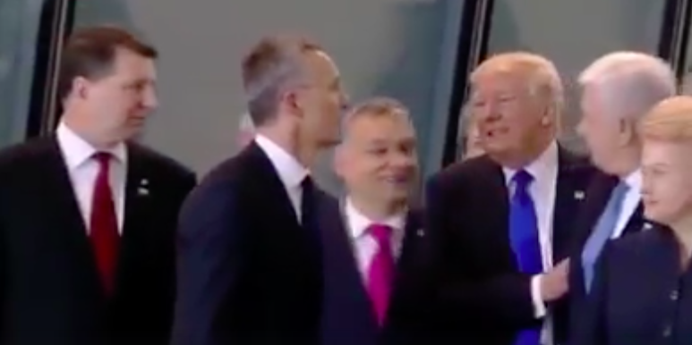 قام الرئيس الأمريكي دونالد ترامب، بدفع رئيس وزراء الجبل الأسود، دوشكو ماركوفيتش، في قمة حلف شمال الأطلسي من أجل الوقوف في الصف الأول.