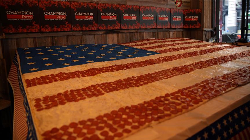بيتزا ضخمة بالعلم الأمريكي.. بأيادي طباخ تركي