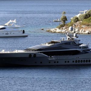 رسا يخت فاخر لرجل الأعمال الروسي سيرجي فيكتوروفيتش، في ميناء مدينة “بودروم” بولاية “موغلا” التركية المطلة على بحر إيجه(غرب).