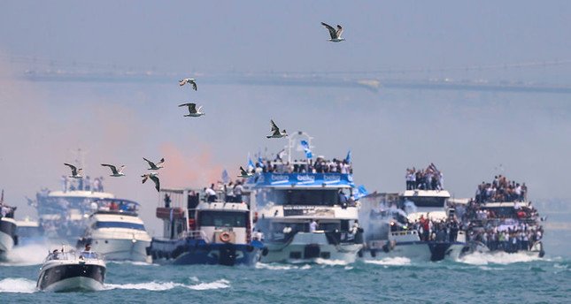 احتفل مشجعي نادي بشيكطاش التركي اليوم السبت بفوز فريقهم ببطولة الدوري التركي المحلي الممتاز، من خلال عرض أسطول يضم نحو 100 سفينة على مضيق البوسفور في اسطنبول.