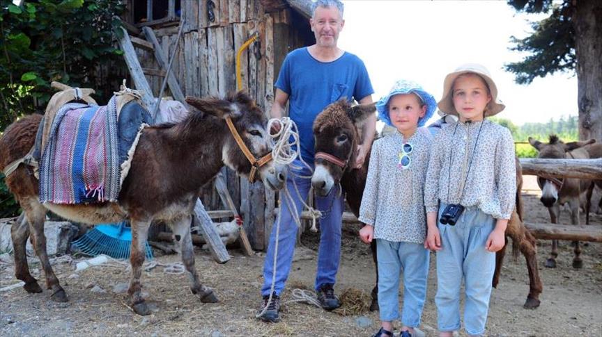 ينظّم مواطن نمساوي يقيم في قضاء “كمر” بولاية أنطاليا التركية، جولات “سفاري” للسائحين الأجانب والمحليين على ظهر الحمير.