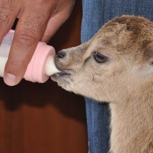 “نازلي جان”.. سخلة (وليدة الماعز) جبلية مكسورة القدم، تتلقى العناية الكاملة من قبل عمال مديرية حماية الطبيعة والحدائق العامة بالولاية، الذين يقدمون لها الحليب عبر زجاجة رضاعة.