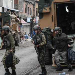 Turkish soldiers prepare themselves for military action during a curfew on February 26, 2016 at Diyarbakir's historical Sur district, eastern Turkey. Violence has flared since the collapse in July of a fragile two-and-a-half-year truce aimed at bringing a halt to decades of a Kurdish insurgency. The Turkish army is still waging an anti-PKK operation in the Sur district of Diyarbakir, raising concerns over the damage inflicted on its historic buildings during the bitter clashes. A curfew has been in place there since December 2. / AFP / ILYAS AKENGIN (Photo credit should read ILYAS AKENGIN/AFP/Getty Images)
