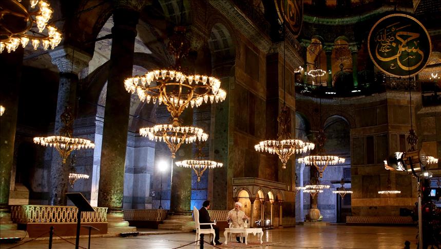 تجدر الإشارة إلى أن رئاسة الشؤون الدينية في تركيا أقامت ليلة الخميس الماضي برنامجًا دينيًا داخل “أيا صوفيا” لإحياء ليلة القدر، تخلله تلاوة القرآن الكريم ورفع الأذان، وقد بث البرنامج على الهواء مباشرة.