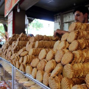 وقبيل عيد الفطر، الذي يصادف أول أيامه غداً الأحد في تركيا، تزدان أسواق قهرمان مرعش، بزبائنها ممن يطلبون “كعك مرعش” الذي يتنافس مع أصناف الحلويات الأخرى والمثلاجات، في الطلب والرغبة.