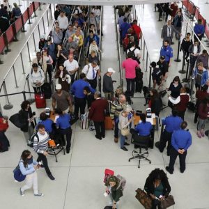 NEW YORK, NY - JUNE 05: People wait in line at John F. Kennedy International Airport (JFK) on June 5, 2017 in New York City. Part of what the White House is calling the president's "infrastructure week," President Donald Trump announced Monday a plan to privatize the nation's air traffic control system. If enacted, it would remove the job of tracking and guiding airplanes from the oversight of the Federal Aviation Administration. (Photo by Spencer Platt/Getty Images)