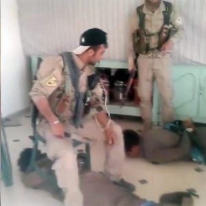 ويُظهر التسجيل، الذي تم التقاطه ببلدة “المنصورة”، جنوب غربي الرقة، قبل شهرين ونصف، تعرض مدنيين مُقيدين للتعذيب، بركلهما وتكسير كراسٍ على رأسيهما، وتهديدهما بالقتل.