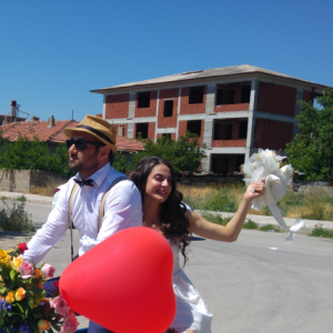 جال عروسان تركيان بعد زفافهما، السبت، شوارع مدينتهما أرزينجان (شرق) بالدراجات الهوائية في مشهد جذب أنظار الكثيرين.