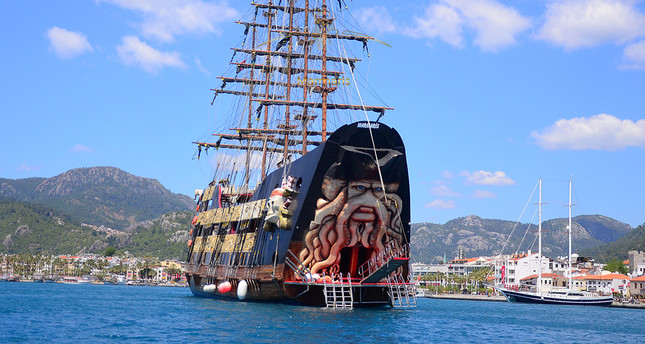 على متن “سفن القراصنة”، يقضي السياح القادمون إلى ولاية أنطاليا التركية يوما ممتعا في البحر وسط أجواء كرنفالية.