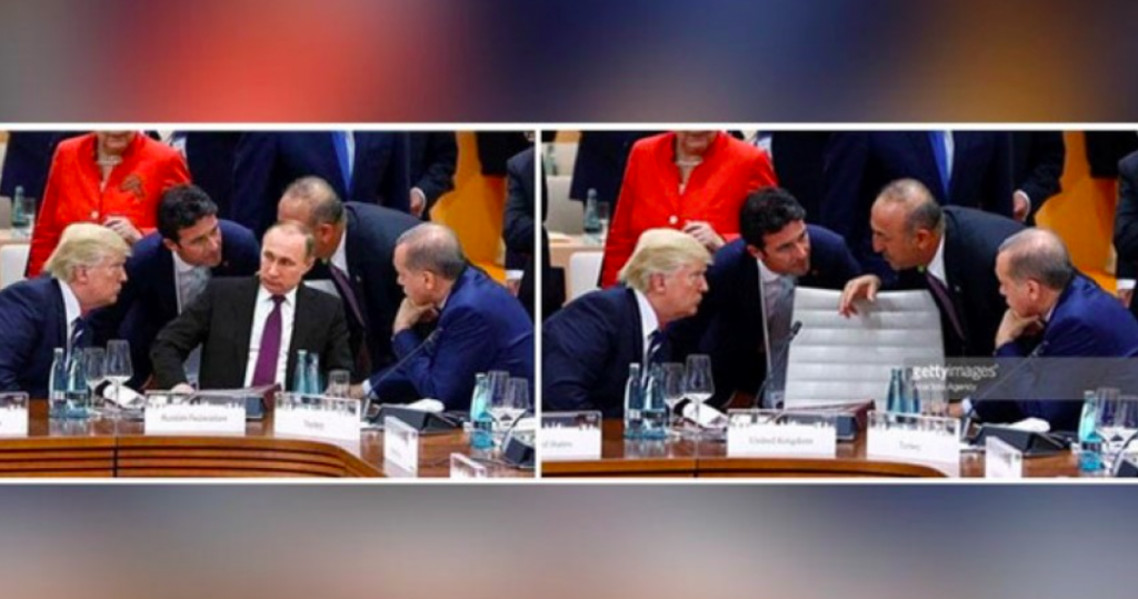 ومن الأمثلة على الصور الزائفة التي انتشرت مؤخرا، واحدة ملتقطة من اجتماعات قمة العشرين التي انعقدت في مدينة هامبورغ الألمانية يومي الجمعة والسبت.
