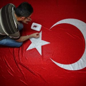 وأضاف: “قررت أن أصنع هدية من منطلق محبتي للشعب التركي ورئيسه رجب طيب أردوغان، فزينت العلم بالكريستال، كما أنني أريد أن أقدمه هدية للشهداء وأسرهم الذين ضحوا بأنفسهم ليلة 15 تموز”.