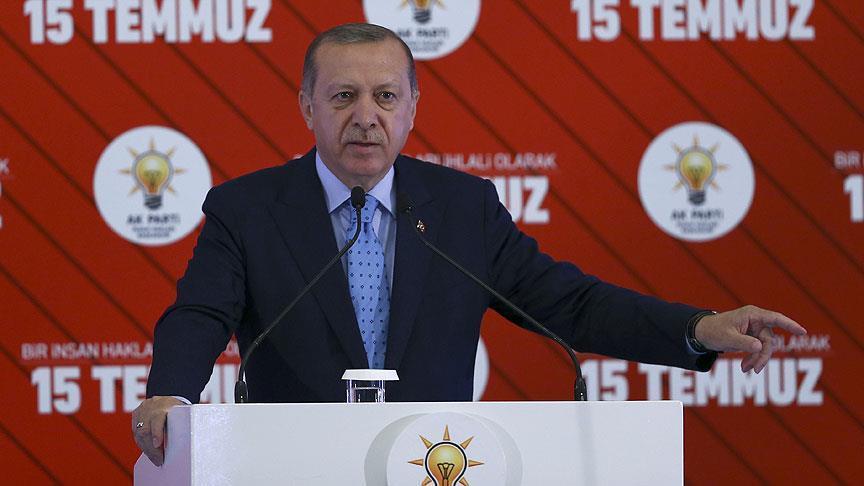 جاء ذلك في كلمة ألقاها أردوغان خلال حفل أقامته غرفة تجارة العاصمة أنقرة بمناسبة الذكرى الأولى لمحاولة الانقلاب الفاشلة التي شهدتها تركيا منتصف يوليو /تموز 2016.