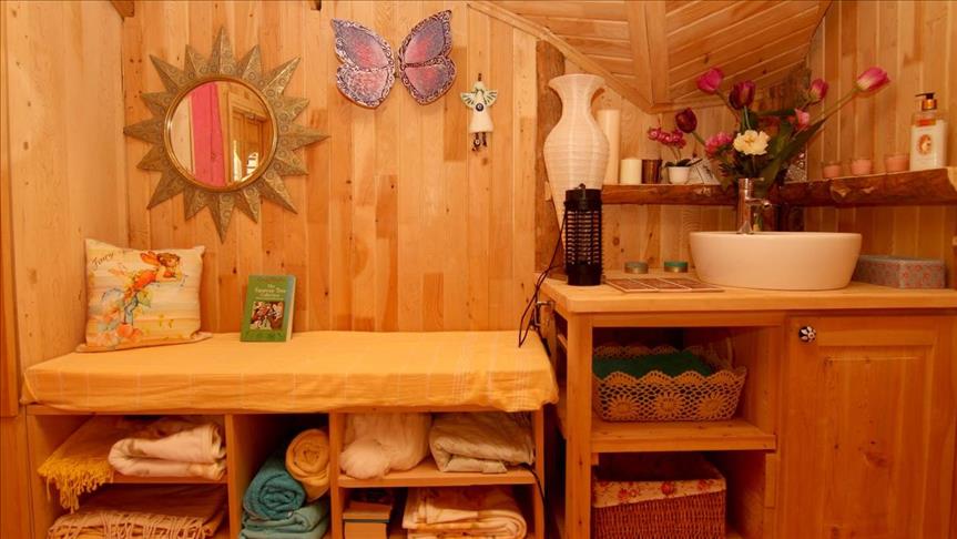 يجذب منزل خشبي متداخل مع أغصان الأشجار السياح المحليين والأجانب في ولاية موغلا جنوب غربي تركيا.