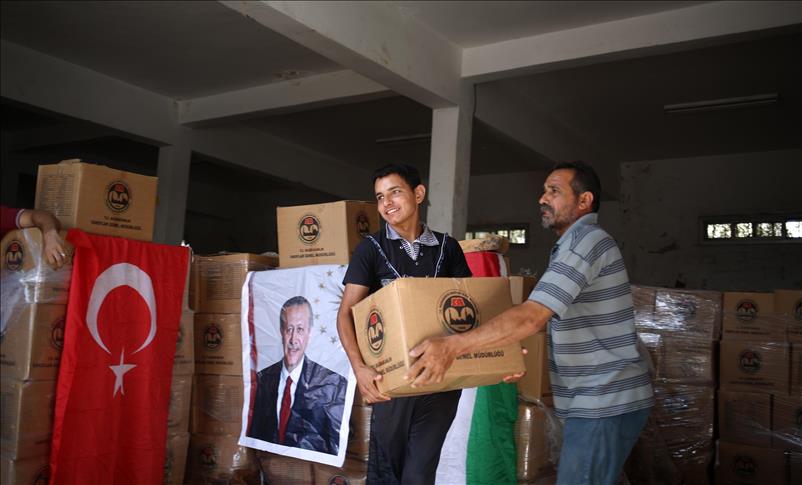 توزيع مساعدات غذائية تركية على عائلات فقيرة بغزة