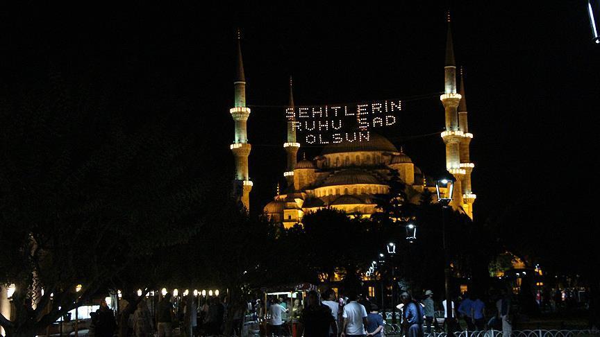 تزيّنت مساجد في مدينة إسطنبول التركية، مساء السبت، بلافتات “المَحْيا”، بمناسبة إحياء الذكرى الأولى لمحاولة الانقلاب الفاشلة التي شهدتها البلاد قبل عام.