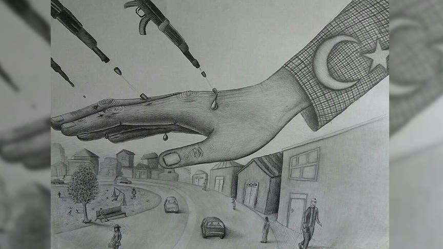 وتظهر اللوحة رصاصات الانقلابيين، التي سعت لاغتيال الديمقراطية التركية، قبل أن يتصدى لها الشعب التركي.
