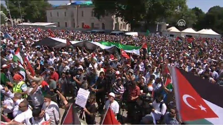 الآلاف يتظاهرون بإسطنبول احتجاجا على الممارسات الإسرائيلية حيال “الأقصى”