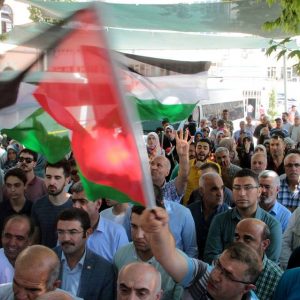 أما في العاصمة أنقرة، فتجمع المتظاهرون في باحة مسجد “حاجي بيرم ولي”، وأدوا صلاة الغائب على أرواح الفلسطينيين الذين سقطوا بالاعتداءات الإسرائيلية.