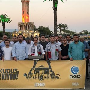 شهدت ولاية إزمير غربي تركيا مظاهرة فجر اليوم الجمعة، احتجاجا على فرض السلطات الإسرئيلية قيودا أمام المصلين في المسجد الأقصى.