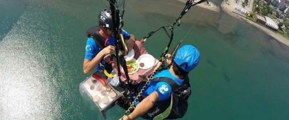 أقام شابان تركيان حفلة شواء قصيرة أثناء تحليقهما بالجو بعد أن قفزا من مرتفع “بوز تيبه” الجبلي الشهير في مدينة “أوردو” شمال تركيا.