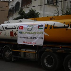 وزّعت هيئة الإغاثة الإنسانية التركية (IHH)، اليوم الثلاثاء، 23 ألف لتراً من الوقود (السولار الصناعي) على عدد من بلديات قطاع غزة، لتشغيل نحو 15 بئراً للمياه.