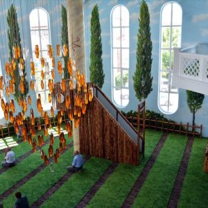 وأوضح أن رئيس جمعية مسجد حميدية، عصمت يابيجي، ومتبرعون، تكفلوا بأعمال بناء المسجد من جديد، وأن الآية الـ 22 في سورة البقرة ألهمتهم شكل التصميم الداخلي.