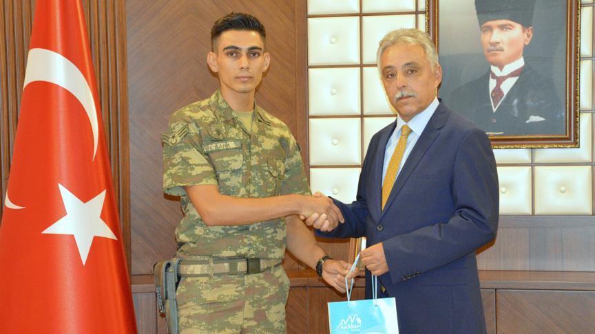 واستقبل والي هكاري، جنيد أورهان توبراك، ضابط الصف “جاويش كاظم قرة” الذي أنقذه هاتفه من الموت، في مقر الولاية، وأهدى له نيابة عن أردوغان، هاتفا جديدا عوضا عن هاتفه القديم.