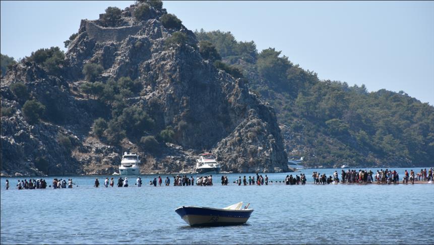 وأضاف أن آلاف السياح والمواطنين الأتراك يزورون شاطئ “قزقومو” من أجل خوض غمار “المشي فوق سطح مياه البحر”.