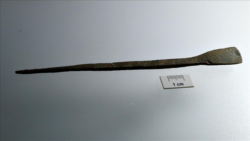 عثر علماء آثار أتراك على قلم برونزي يقدر عمره بنحو 1800 عام في مدينة أسوس الأثرية بولاية جناق قلعة شمال غربي تركيا.
