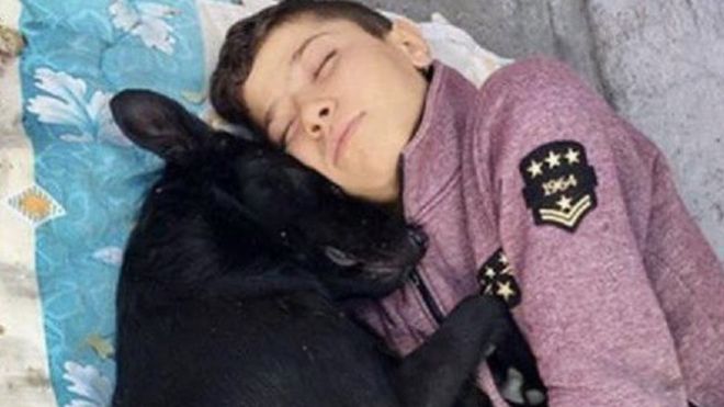 انتشرت بشكل كبير على مواقع التواصل الاجتماعي صورة لطفل سوري مشرد وهو نائم في حضن كلب بأحد شوارع مدينة اسطنبول التركية.