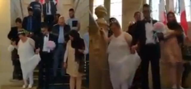ووفقا للفيديو المتداول ، ومدته دقيقتان، يظهر الشاب المغربي وزوجته الفرنسية التي تتحرك بصعوبة، محاطين بمجموعة من المغاربة الذين عبروا عن فرحتهم الكبيرة بهذا الزواج.