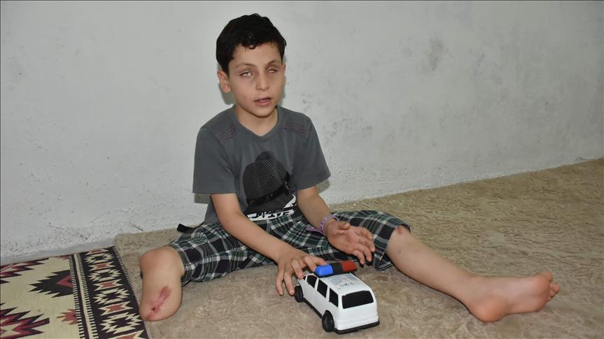 وأشار إلى أن ابنه أصيب بجروح بليغة، حيث تم نقله إلى مستشفى مدينة كليس التركية، مبينا أن أحمد أدخل على الفور إلى غرفة العمليات، حيث بترت ساقه اليمنى، وفقد عينيه.
