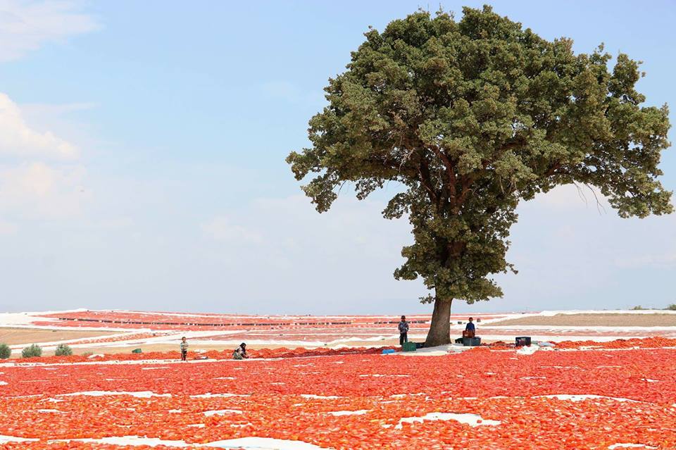 وفي هذه الأيام، يواصل المزارعون في منطقتي برغاما بولاية إزمير، وساروخانلي في مانيسا (غرب)، حصاد الطماطم لتجفيفها وجعلها جاهزة للتصدير.